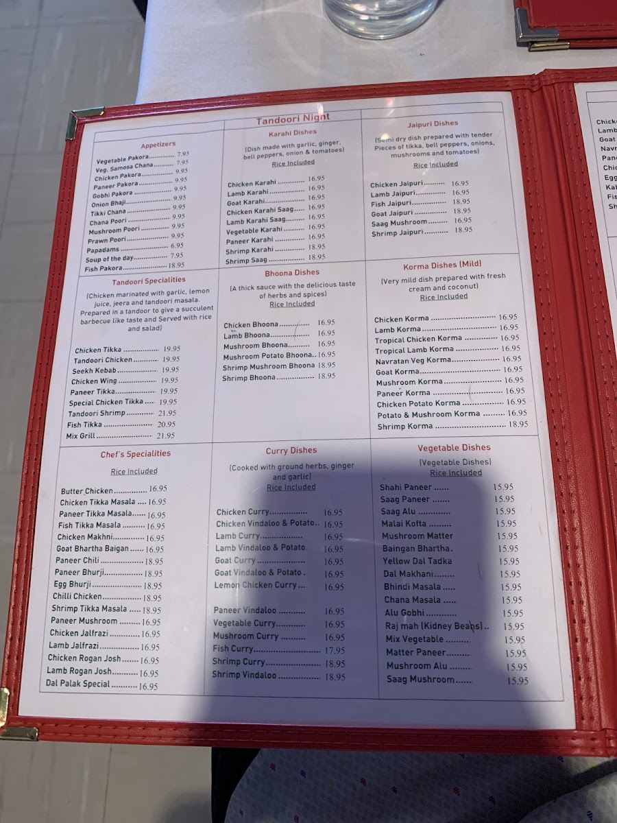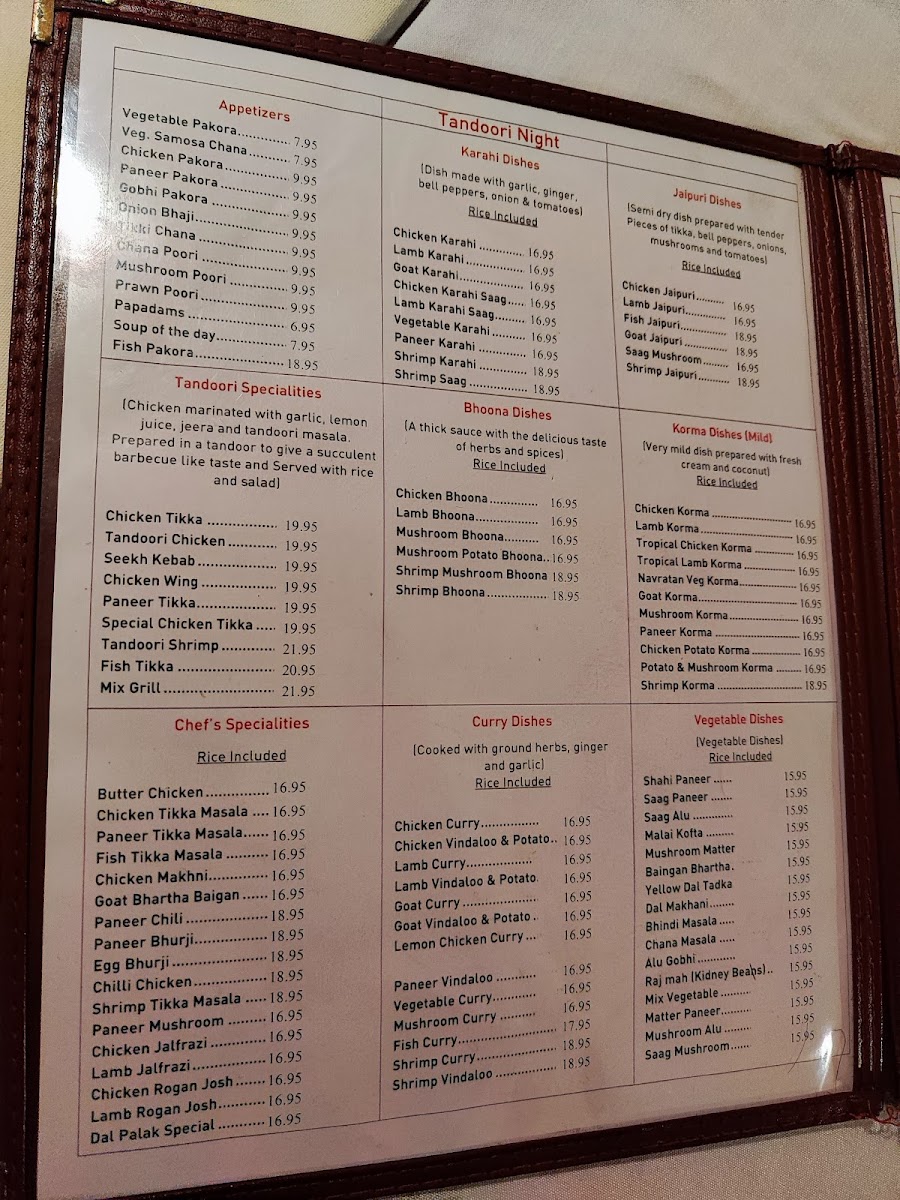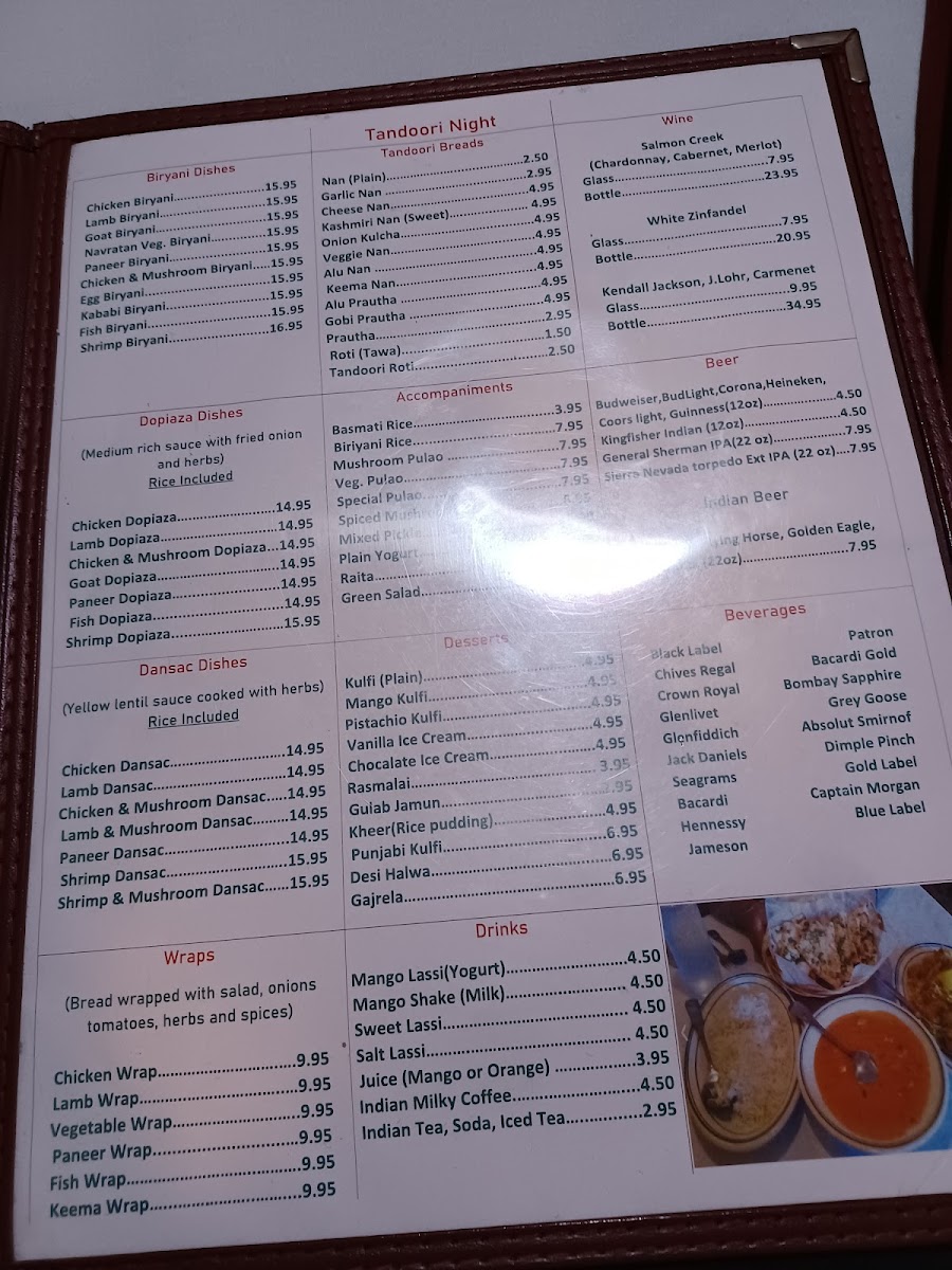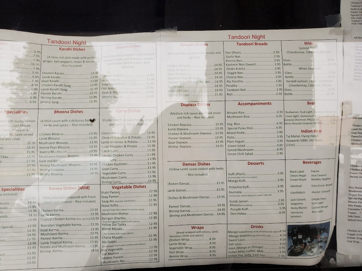 Tandoori Night Menu